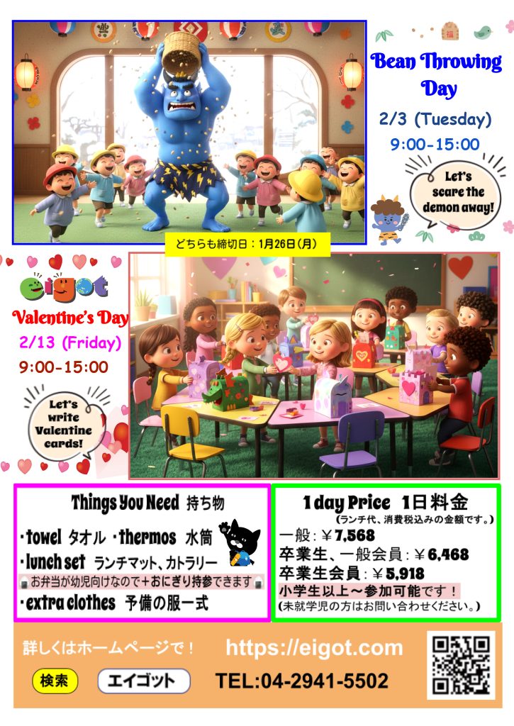 2月3日(火)は Bean Throwing Day(節分・豆まき)イベント